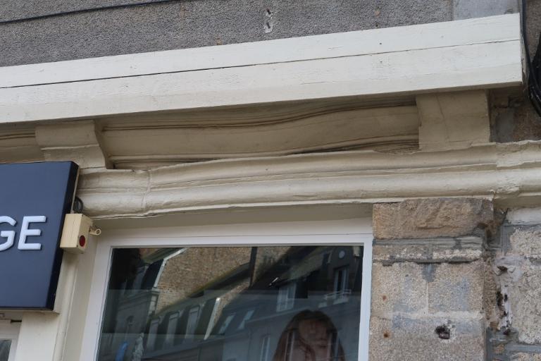 Le décor sculpté sur l'encorbellement se poursuit en partie gauche du poteau cornier du rez-de-chaussée.