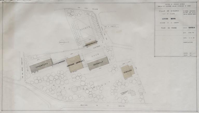 Lycée de jeunes filles. Plan-masse. Patrice Simon, architecte, 19/10/1963.