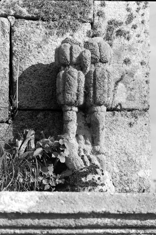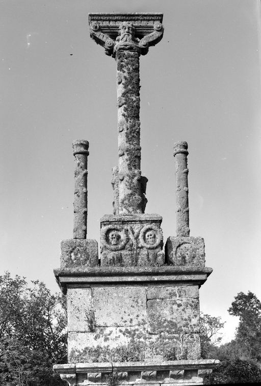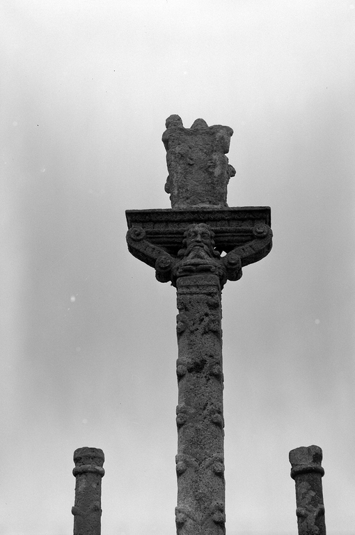 Calvaire provenant de la chapelle saint Corentin ; très dégradé en 1794, il devait comporter à l'origine un grand nombre de personnages ; porte la date 1519.