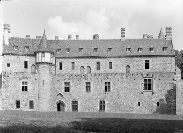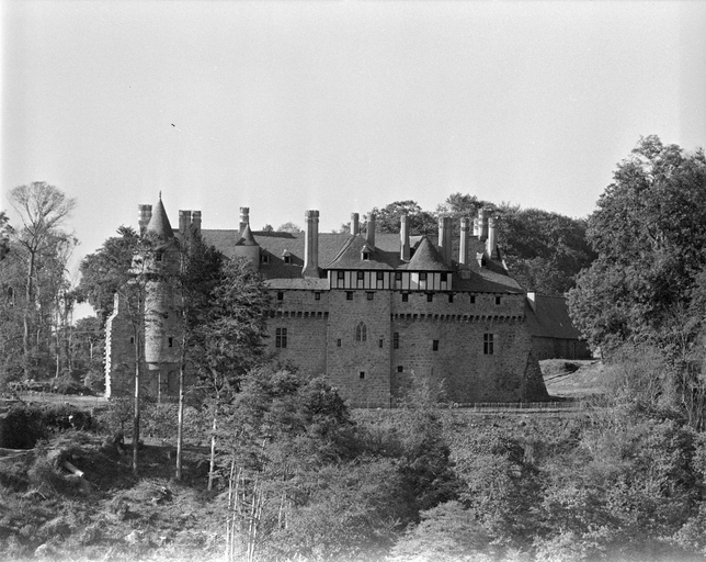 Le château actuel est adossé à une enceinte défensive préexistante qui témoigne du château primitif démantelé durant la guerre de Succession de Bretagne (1341-1364). Les extrémités nord et sud de l’enceinte ont peut-être été symboliquement conservées pour marquer l’ancienneté du lieu.