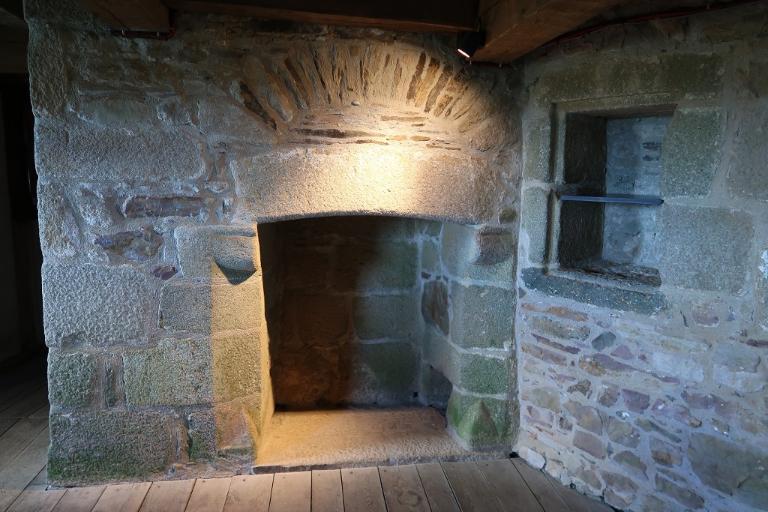 Comme l’atteste la présence de deux cheminées, mais surtout de deux portes donnant côté cour sur la coursière, la grande salle haute était divisée par une cloison. Eclairée côté cour par deux fenêtres, la chambre haute nord est dotée d’une cheminée à manteau en bois à encorbellement dite trégoroise et hotte pyramidale (très proche stylistiquement de celle du manoir de Kerdéozer à Pleudaniel datée par millésime de 1418). La chambre haute sud est dotée d’une cheminée dans le mur de refend sud : elle est éclairée côté cour par deux fenêtres et côté Trieux par une fenêtre éclairée en second jour (disposition observée à Tréguier dans la sacristie de la cathédrale Saint-Tugdual).