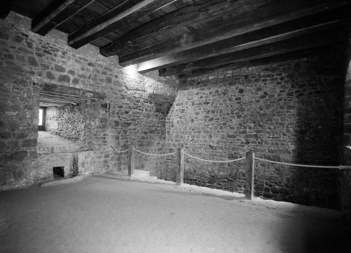 L’entrée se fait directement dans la salle basse. Elle est éclairée côté cour par deux grandes fenêtres à croisée et chauffée par une cheminée implantée dans le mur gouttereau postérieur. Située presque face à l’entrée, dans l’épaisseur du mur postérieure, se trouve une pièce chauffée dont l’usage n’est pas identifié (corps de garde, "bureau" de l’intendant ?)