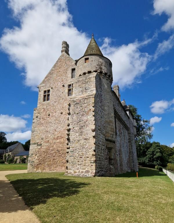 Cette grande demeure seigneuriale commanditée avec l’assentiment du duc Jean V par Catherine de Troguindy (1340-1418), veuve de Maurice du Parc, chevalier, membre de la haute noblesse, est datée des années 1405-1418. Inspirée des résidences princières, elle est conçue sur trois niveaux : la distribution se fait par deux escaliers et par une coursière en encorbellement (disparue) située au deuxième étage. Côté Trieux, la demeure conserve les vestiges d’une enceinte défensive préexistante démantelée durant la guerre de Succession de Bretagne (1341-1364).