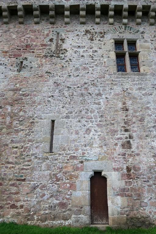 Si les maçonneries sont majoritairement en moellon de grès rose ou rougeâtre de provenance proximale (Plourivo) simplement équarri (et en quantité moindre en "spilites de Paimpol", bleu-verdâtre, notamment dans les parties anciennes), les entourages des ouvertures, chaînes d’angle, rampants, chevronnières, escaliers en vis, cheminées, niches, corbeaux et consoles sont en pierre de taille de granite gris (granodiorite de Bréhat et de ses environs). La tour antérieure et la tour sud-est sont élevées en pierre de taille de granite.