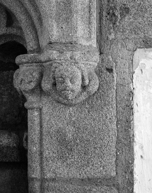 Porte d’entrée, chapelle (angles de l’arcade, pied de l’autel, piédroits des portes des deux oratoires), piédroits de fenêtres, de cheminées ou de niches sont ornés de colonnettes à chapiteaux et bases "en flacon". Les piédroits sont tantôt à simple, double ou à triple colonnettes.