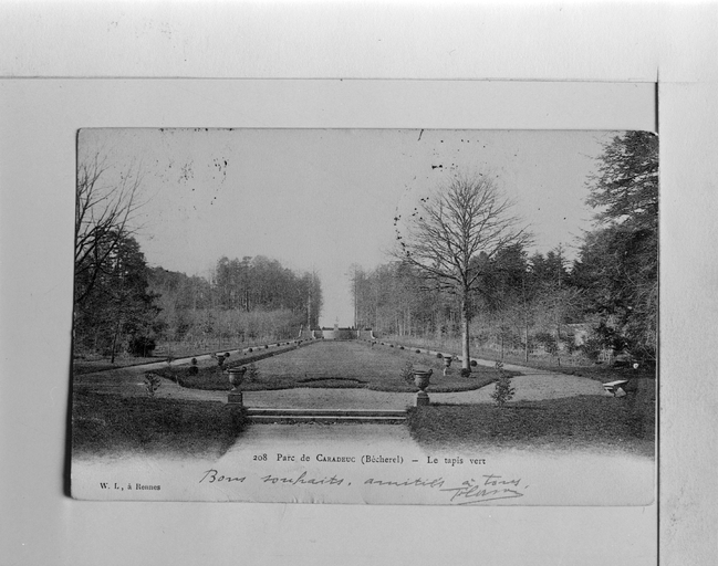 Le château de Caradeuc parfois appelé « le Versailles breton » demeure malgré ses multiples transformations dans l’esprit du 18e siècle. Le jardin remarquable aménagé également en plusieurs périodes est un manifeste de la culture classique. Il rappelle en cela celui de la Garenne Lemot à Clisson. Cette esthétique privilégie la redécouverte de la nature d’un point de vue poétique, en exploitant les irrégularités du site et en y ajoutant des stations ou fabriques de jardins, fondements du jardin pittoresque. La diversité des installations dans un même lieu est par ce fait une curiosité. Le parc abrite les vestiges du château de la Costardais à Médréac, les grilles d’entrée proviennent de la place du Puits artésien de grenelles à Paris, les bornes et les chaînes sur la terrasse nord sont des remplois de l’hôtel de ville de Rennes.
