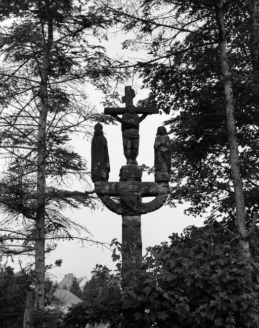 Calvaire portant la date 1700, provenant de la chapelle de Lochrist en Coray ; remontage en 1936.