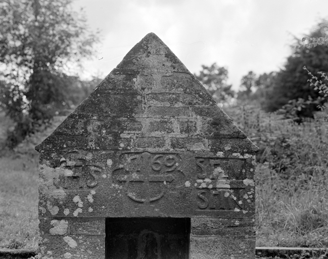 Fontaine de dévotion portant l'inscription : IHS 1769. ST IVSTIN MRE : COLVN : C.