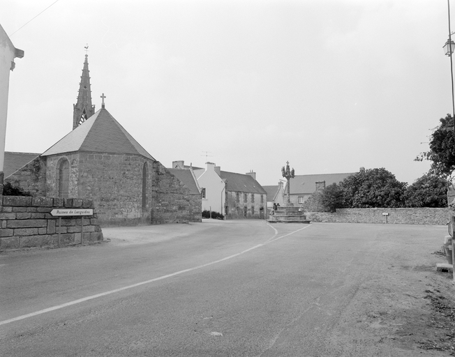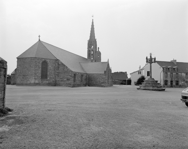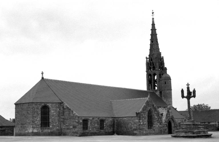 1ère campagne de construction 13e siècle, piliers de la nef type Pont-Croix ; clocher vers 1520 ; reconstruction importante entre 1653 et 1660 ; reprises 1791 ; calvaire daté 1703 ; charpente et toitures restaurées 1976 ; inscriptions chevet : " 1653 I : LE GOUFF M : BARIOV : F ", " LE GALLES MG : P : F : D : ALANOU : F : M : KVAHV : O ", inscription calvaire : " 1703 M : P : PROVOST ". Site classé en 1936.
