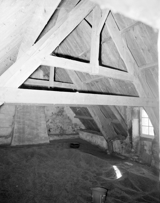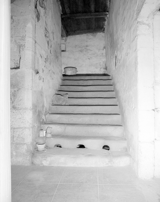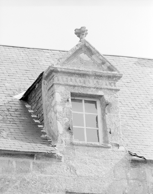 Fenêtre de l'aile nord du logis datée 1668 ; transformations au 19e siècle.