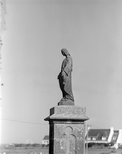 Statue datée 1860, inscription non lue en breton (socle).