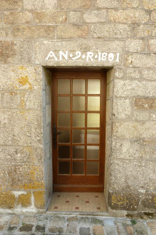 Cette maison a été bâtie en 1801 (date portée) à la place d’une habitation plus ancienne décrite en 1790 comme « petite maison sans étage couverte de paille ».