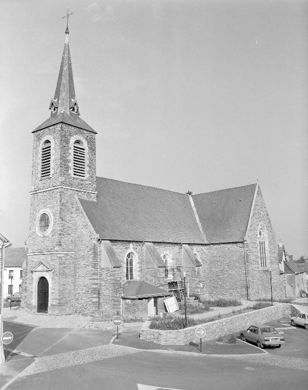 Ce n'est qu'à partir de la seconde moitié du 19e siècle que l'église prend sa forme actuelle. Monsieur Charles de la Bourdonnaye et Mademoiselle Marie Charlotte de la Bourdonnaye participent au financement des travaux qui se déroulent de 1850 à 1853. Ceux-ci ont été orchestrés par l'architecte Anger de la Loriais. Un transept saillant a été ajouté à l'édifice, ce qui a permis de dessiner un plan en croix latine. Le chœur est reculé de quelques mètres et il est doté de deux chapelles latérales. On remplace également le clocher qui se trouve alors en bas de la nef actuelle. En remerciement à leur don Monsieur et Mademoiselle de la Bourdonnaye ont été inhumés dans l'église dont il reste deux stalles dans les bras du transept.
