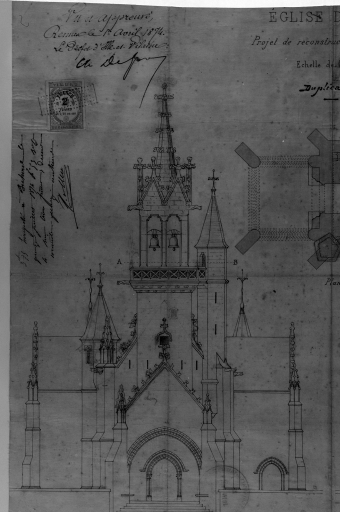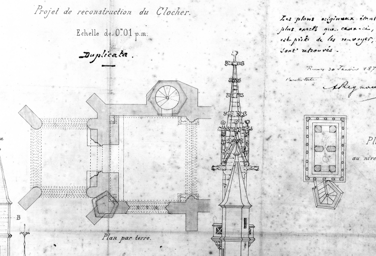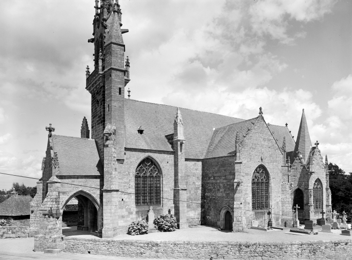 L’église est restaurée à partir de 1875 : les charpentes sont entièrement refaites et l’actuel clocher réalisé par l’architecte diocésain Arthur Regnault dont l’intervention va bien au-delà d’une simple restauration et transforme radicalement la silhouette de l’église. À la place d’un lourd beffroi de charpente habillé d'ardoise, encore visible sur des photographies des années 1860, édifié à la hâte à la fin du XVIe siècle, faute des fonds suffisants pour édifier la tour des cloches initialement prévue, la création d’un clocher inspiré par les modèles de la Cornouaille, s’impose par sa réussite exemplaire à parfaire l’élégance de l’édifice du XVe siècle.