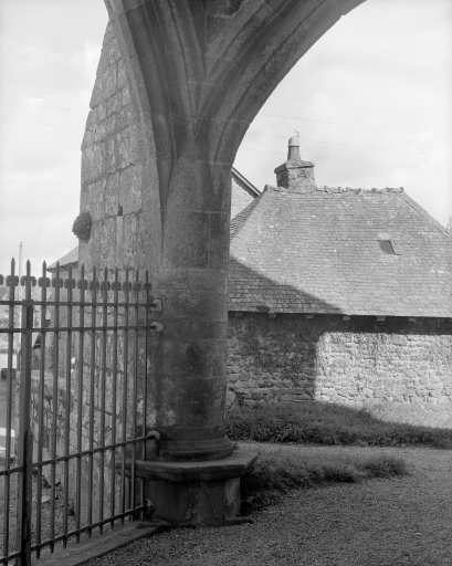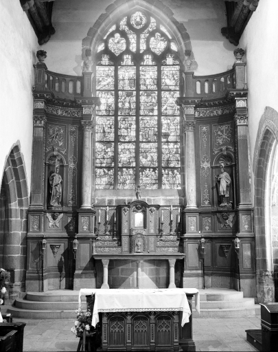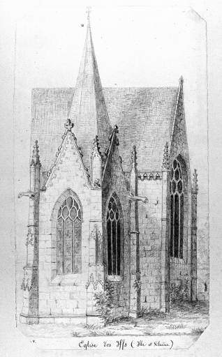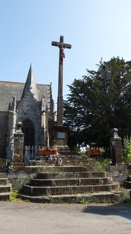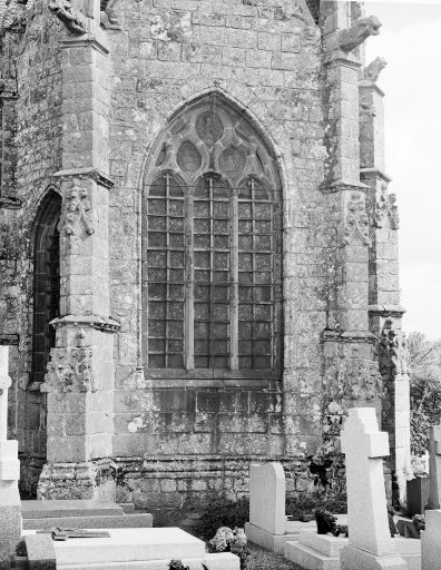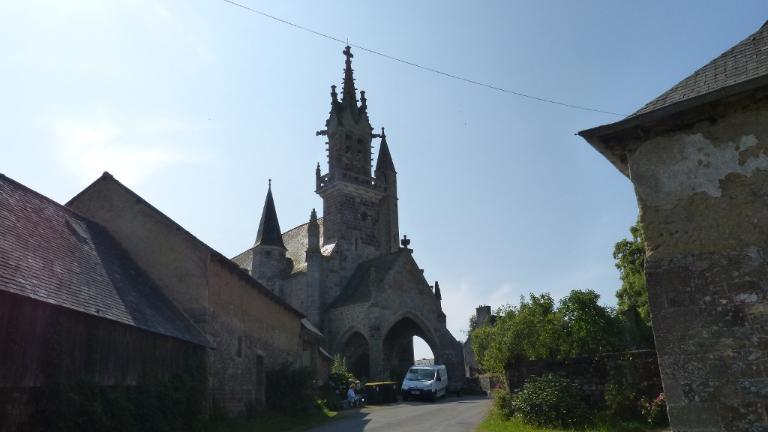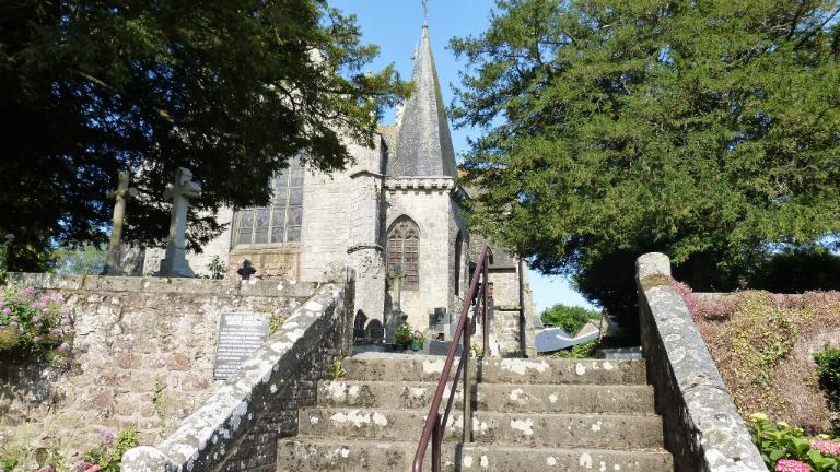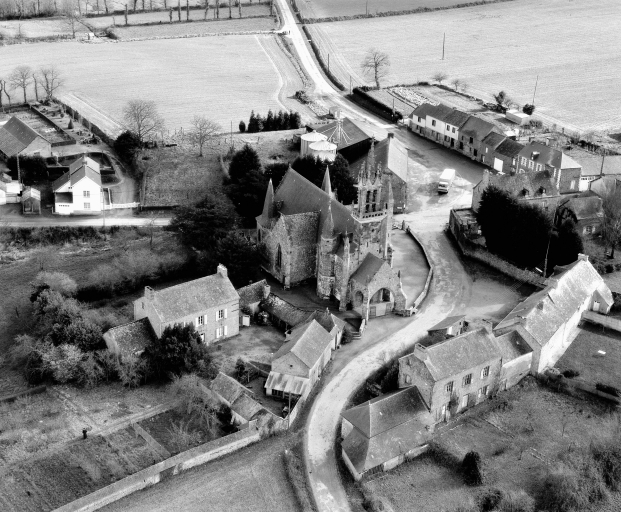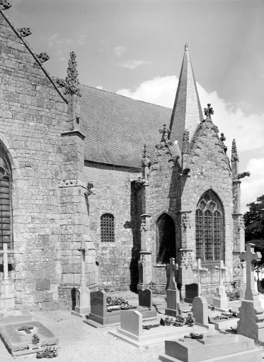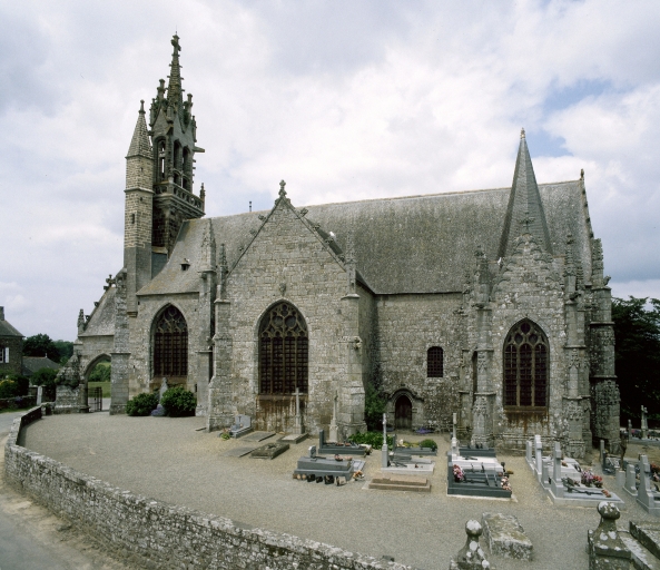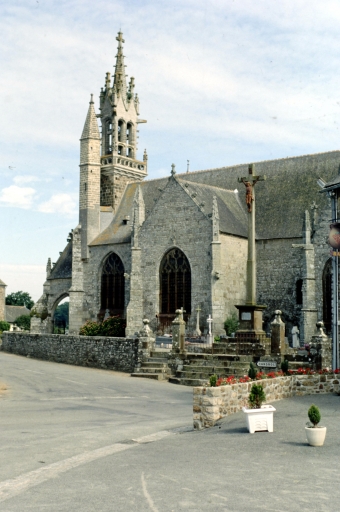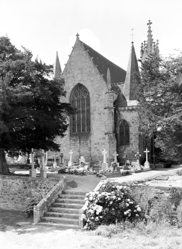 Vestiges d'un premier édifice de la première moitié du 15e siècle dont subsistent : la porte occidentale, le gros œuvre du bras sud et sa porte, à l'exception des contreforts et de la baie, le mur sud de la 1ère travée du chœur et sa porte, au nord la fenêtre de l'ancienne chapelle de Montmuran et l'ancienne porte d'accès depuis le chœur ainsi qu'une partie du bras nord (chapelle de la Vierge). A la fin du 15e siècle, sous la famille de Laval, seigneur de Montmuran, construction du porche ouest, reconstruction de la nef, édification de la chapelle Saint-Yves au sud du chœur et remaniements aux bras du transept (contreforts ajoutés) . Vestiges de vitraux du milieu du 15e siècle et importante commande de la première moitié du 16e siècle attribuable au maître Michel Bayonne. Ancien porche ossuaire, accolé à l'ouest du bras sud au début du 17e siècle, détruit après 1875. Remaniements ponctuels au 17e siècle (fenêtre du mur sud du chœur datée 1682). L'ancien clocher de charpente à l'ouest qui portait la date de 1587 a été remplacé en 1867 par un clocher pignon de style néo-gothique cornouaillais dû a l'architecte Arthur Régnault.