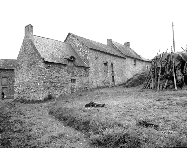 Bâti sur un plan rectangulaire, la maison construite dans la 2e moitié du 19e siècle se compose d’un rez-de-chaussée, d’un étage et d’un comble. Construite en moellons de granite, la façade principale orientée sud est percée par sept ouvertures : quatre en rez-de-chaussée dont une porte ; trois à l’étage dont une gerbière. Le pignon est, composé de moellons de granite en rez-de-chaussée et en bauge en partie supérieure, est percée d’une porte. Le pignon ouest soutient un appentis en bauge. La façade postérieure, composée de moellons de granite en rez-de-chaussée et en bauge en partie supérieure, est percée par trois ouvertures : une fenêtre en rez-de-chaussée ; une fenêtre et un jour à l’étage. L’arase des murs est constituée de corbelets en bois équarri supportant cache-moineau. La couverture est en ardoises fixées pour son versant nord et en matériau synthétique (amiante) pour son versant sud ; l’étanchéité du faîtage est assurée par des tuiles faîtières mécaniques. Les deux pignons soutiennent chacun une souche de cheminée, en brique à l’est et en ciment à l’ouest.