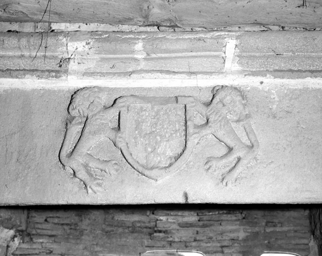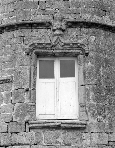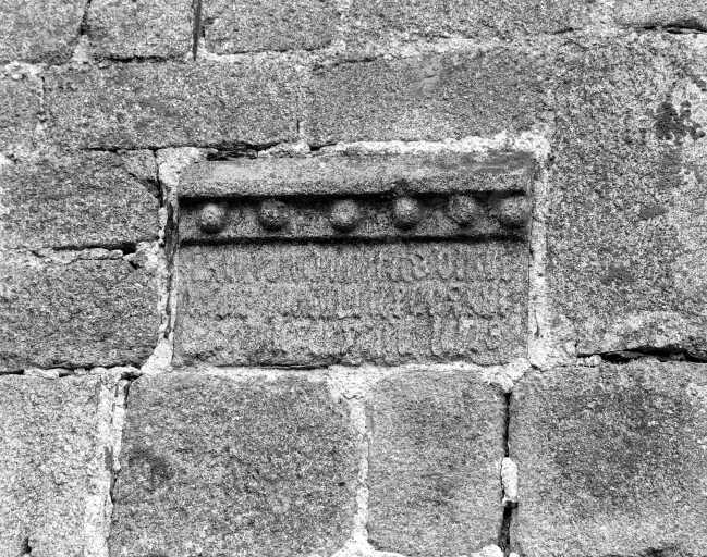 Manoir 4e quart 15e siècle, date 1480 portée sur tour d'escalier avec inscriptions caractères gothiques illisible.