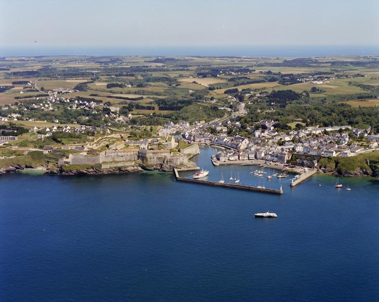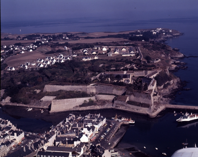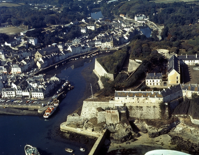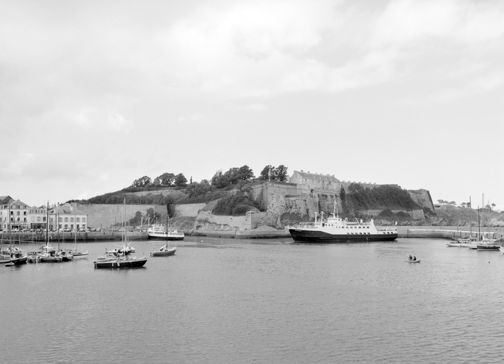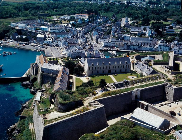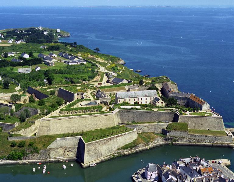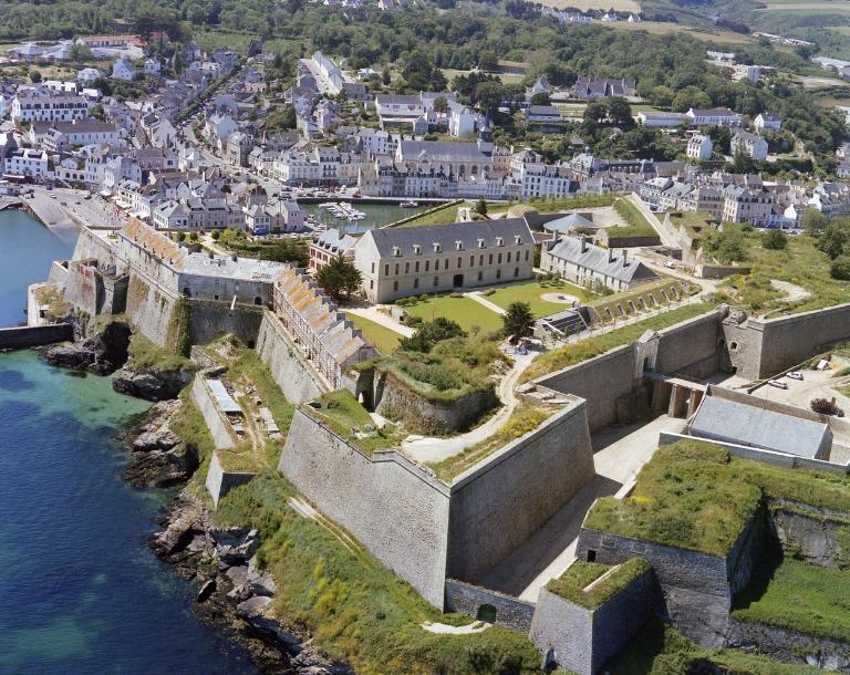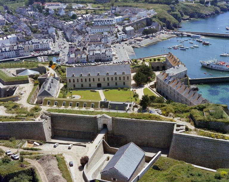 Première citadelle construite par les bénédictins après 1029 ; reconstruction à partir de 1558 avec des matériaux provenant de la destruction du château d'Auray ; de 1658 à 1661 travaux par Daigremont et Dieulaman ; intervention de Vauban de 1683 à 1689 ; destruction partielle en 1761 et reconstruction entre 1827 et 1880.