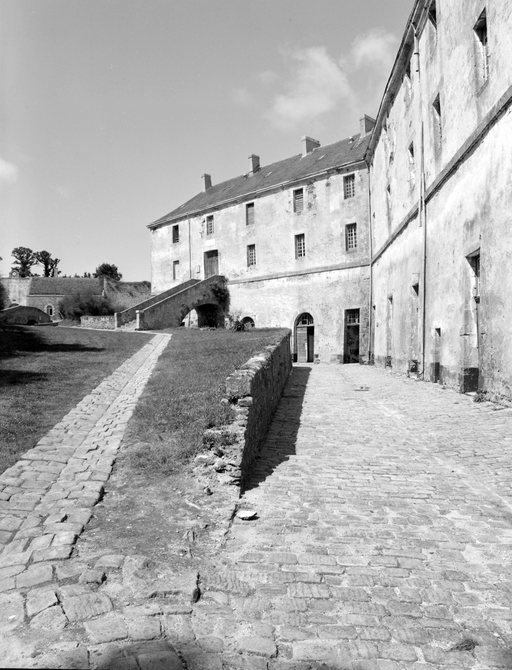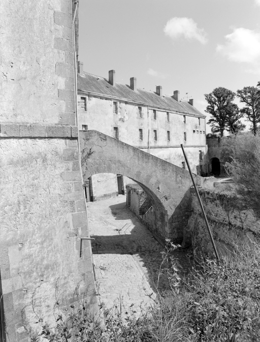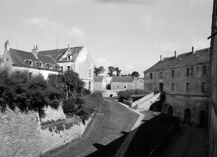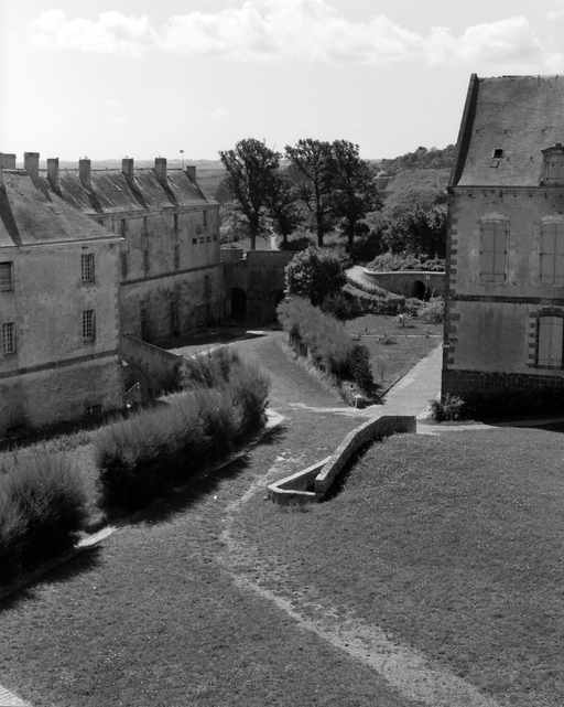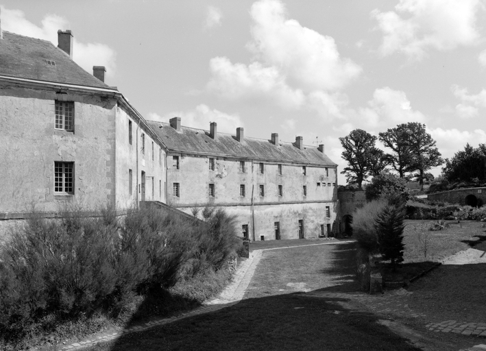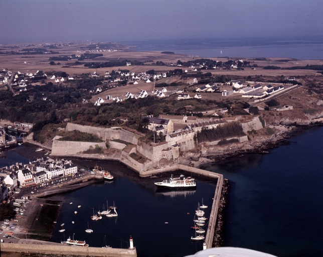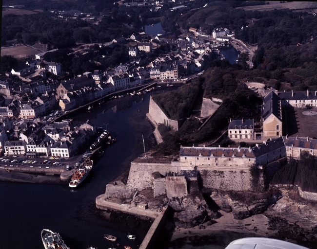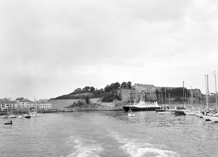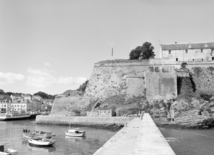 Première citadelle construite par les bénédictins après 1029 ; reconstruction à partir de 1558 avec des matériaux provenant de la destruction du château d'Auray ; de 1658 à 1661 travaux par Daigremont et Dieulaman ; intervention de Vauban de 1683 à 1689 ; destruction partielle en 1761 et reconstruction entre 1827 et 1880.