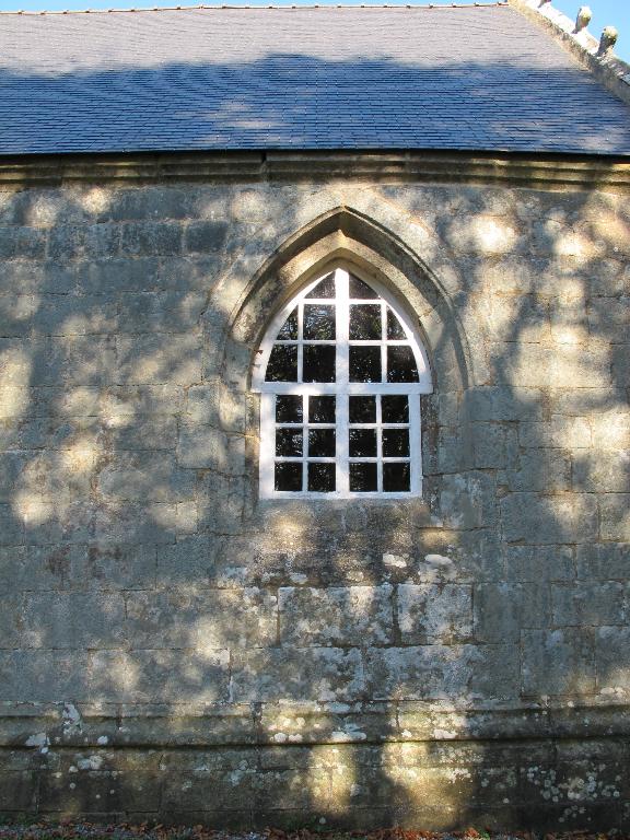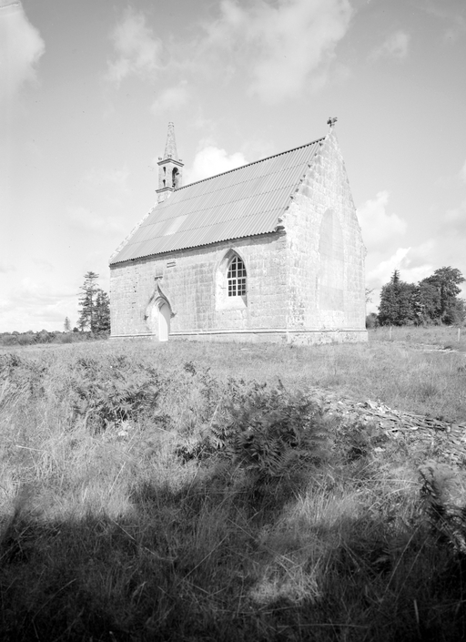 Petite chapelle construite en grand appareil de granite, couverte en ardoise. Une plinthe moulurée court sur trois des murs de la chapelle, sud, est et nord. Deux portes en arc brisé donnent accès à la nef, une à l'ouest, la seconde au sud couronnée d'une archivolte dont le fleuron était remplacé par une pierre carrée sans doute armoriée aujourd’hui buchée. Un double phylactère jouxtait ce blason. A l'intérieur, cette porte a conservé son gond de pierre. La fenêtre sud en arc brisé mouluré a perdu son réseau. Quant à la grande baie du chevet, elle est aujourd'hui bouchée.