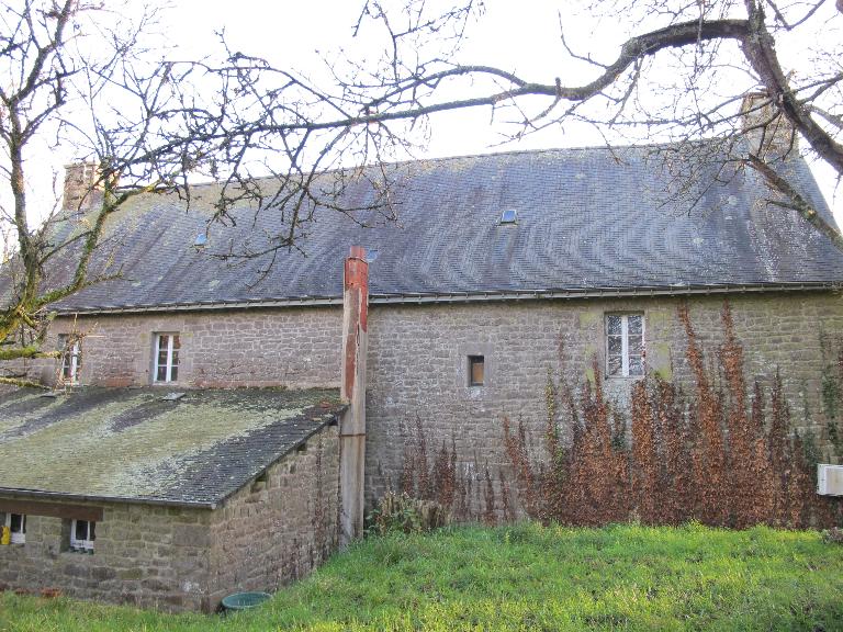 Au sud les dépendances en rez-de-chaussée se composent d'un logis prolongés d'une remise à l'est, d'un second logis avec étable (?) à l'ouest. Elles sont aujourd’hui en moellon couvertes d'ardoise quand, en 1967, la dépendance Est était couverte de chaume.