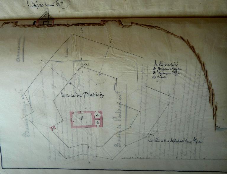 Service historique de la Défense, département Armée de Terre, Vincennes. Archives du Génie ; Article 8, Places françaises et d'Algérie : 1 VH 295, Place de Belle-Île-en-Mer, projets et dépenses annuels, 1858-1859. Direction du Génie de Brest, Place de Belle-Ile, Mémoire du chef du Génie sur les projets supplémentaires 1858-1859, 8 décembre 1858.
