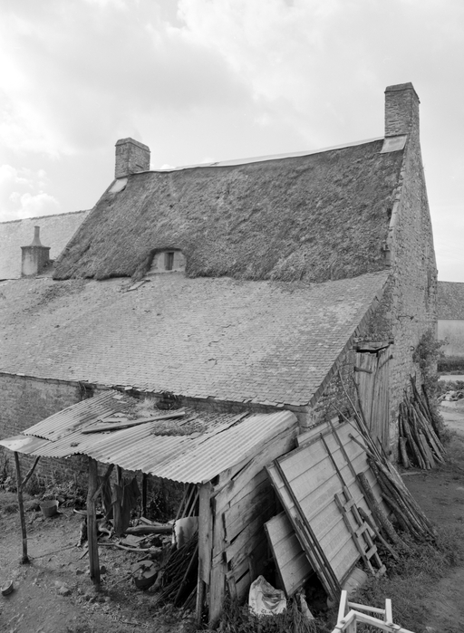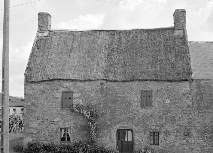 Fenêtre droite de l'étage datée 1523. Fenêtre du rez-de-chaussée portant l'inscription : " F. LEIOU PRETRE ". Ancienne maison de chapelain (?). Grange-étable en alignement à l'est fin 19e siècle (elle date peut-être de 1870).