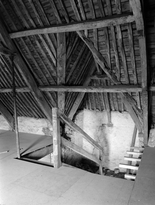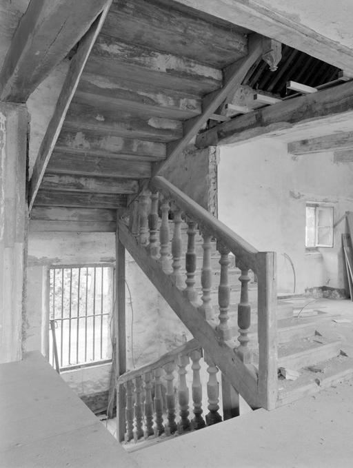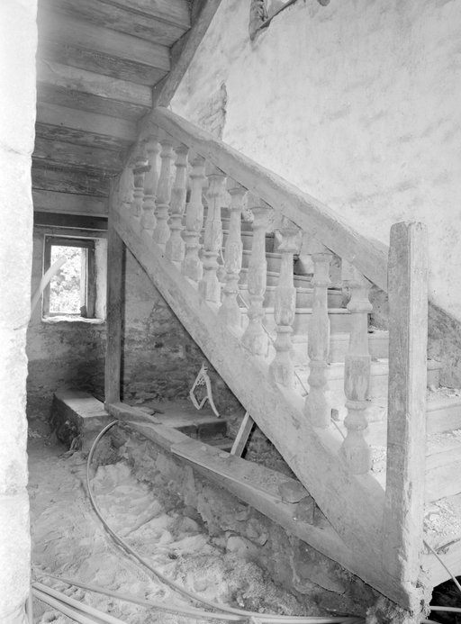Tour d'escalier, élévation nord 17e siècle (?). Elévation antérieure datée 1746. Escalier daté 1747. Blasons non identifiés.