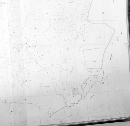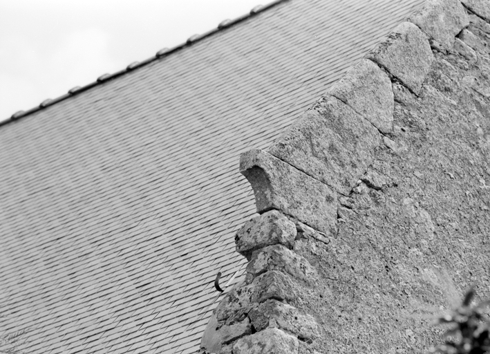 Manoir milieu 17e siècle. Cheminée datée 1659, portant un écu à neuf mâcles (comme Rohan). Blason non identifié sur le linteau de la porte de l'escalier. Colombier mentionné sur le cadastre ancien détruit.