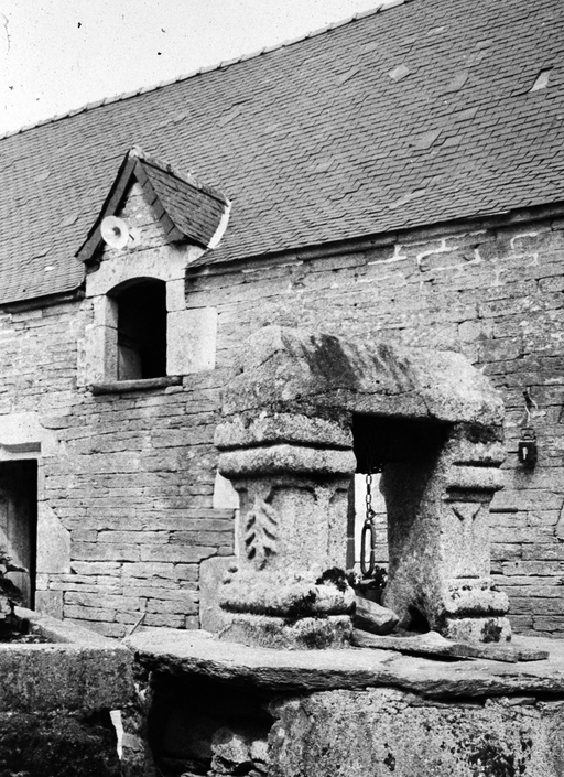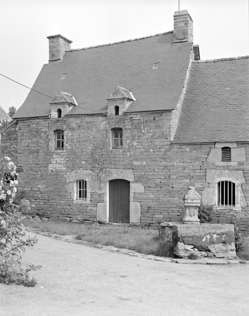 Logis daté 1793. Parties agricoles et puits contemporains. Inscription logis : " F : F : PAR YVES GUILLOME ET MARIE COGNANF 1793 ". Cadran solaire sur souche de cheminée, ensemble homogène.