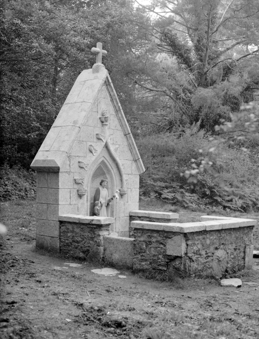 Chapelle et fontaine érigées en 1897, date portée, à proximité du retranchement médiéval de Castel-Finans. Fontaine de dévotion renfermant un groupe de sainte Tréphine.