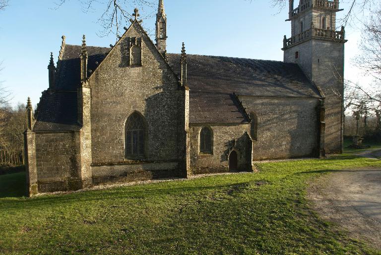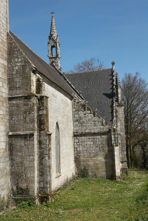 Le chantier reprend vers la fin du 15e siècle, avec l´édification de la nef et de ses chapelles latérales, dont le parti de plan reprend dans ses grandes lignes celui de l´importante chapelle de pèlerinage, toute proche, de Quelven. L´ensemble de l´édifice est couvert d'une fausse voûte lambrissée en berceau brisé (avec entraits dans la nef), à l´exception de la chapelle sud dont les deux travées reçoivent des voûtes d'ogives aux lourdes nervures. Celle-ci ouvre sur le vaisseau central par deux arcs segmentaires retombant sur une pile de plan losangé ; la chapelle nord, couverte d'un demi-berceau lambrissé, par une seule arcade.