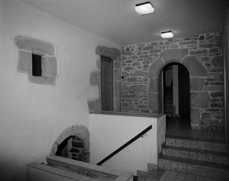 Maison en moellon de granite gneissique avec tour d'escalier postérieure avec escalier en charpente détruite ; cave avec accès intérieur par escalier droit en maçonnerie.