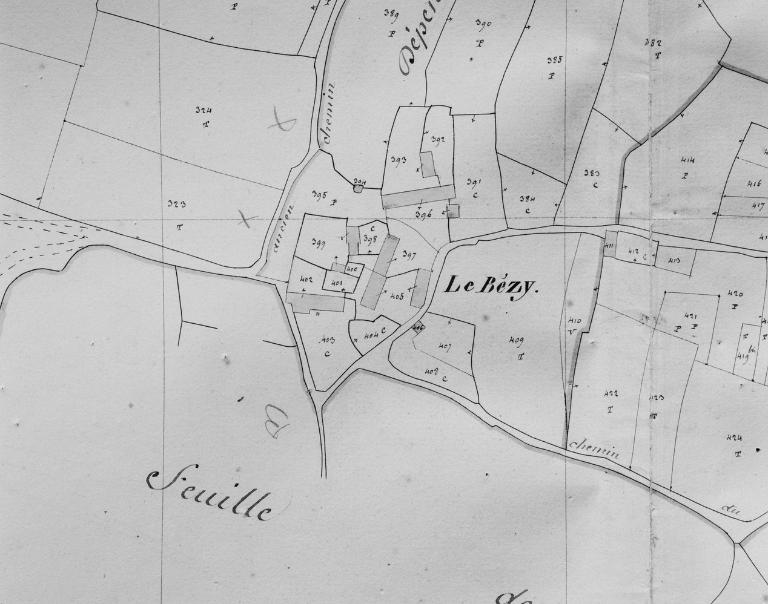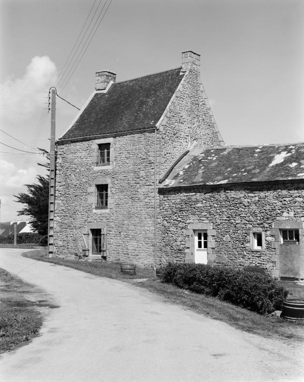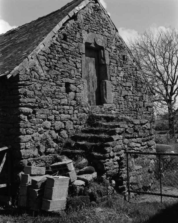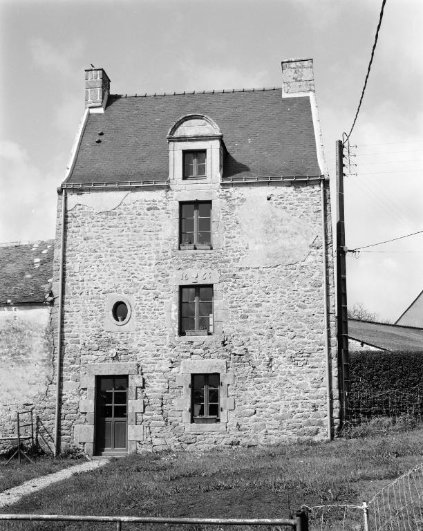 Maison de prêtre (calice) datée 1665 ; tourelle d'escalier ouest supprimée entre 1810 et 1844 ; ouvertures du rez-de-chaussée (porte et fenêtre) remaniées au 19e siècle avec ajout d'enduit à l'est ; greffée sur un corps de bâtiment de ferme en alignement 17e siècle très remanié ; remise sud 17e siècle.
