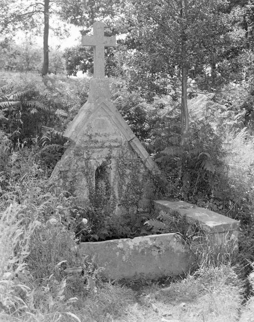 Croix réalisée en 1827 (porte la date) ; fontaine contemporaine.