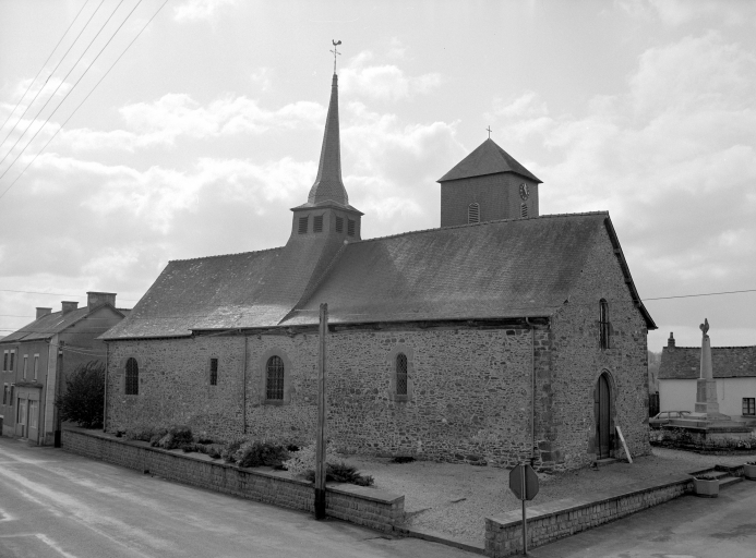 Paroisse citée dès le milieu du 12e siècle. Vestiges probables de l'église romane dans le mur nord de la nef. Charpente du 16e siècle. Campagne de la 1ère moitié du 17e siècle : chapelle sud, baies de la nef. Sacristie du 18e siècle (porte la date 1730) . Clocher à l'angle du bras sud de la nef ajouté au cours du 19e siècle et surhaussé.