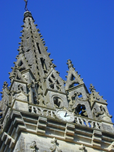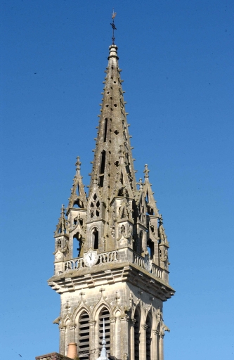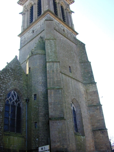 Eglise caractéristique des églises dites à pignons multiples. S'y mêlent des références au gothique tardif et des éléments décoratifs du répertoire de la Renaissance. Elle est commencée au 16e siècle et achevée dans la première moitié du 17e siècle. Plusieurs dates et inscriptions portées sur l'édifice permettent de suivre l'évolution des travaux : dédicace de la tour en 1552, construction du collatéral sud entre 1622 et 1632. La tour découronnée en 1705, sera munie d'une nouvelle flèche entre 1892 et 1894 . Cette dernière sera dessinée par l'architecte Gelly et financée par Jacques Heinry, riche minotier de Carcraon, en mémoire de son fils décédé en 1891. Plusieurs remaniements et travaux seront effectués également dans le courant du 19e siècle, comme en témoignent également la date de 1826 apposée sur une chapelle donnant sur le choeur et la date de 1844 gravée sur un blason au dessus du portail ouest. La sacristie située contre le collatéral nord sera également reconstruite dans la deuxième moitié du 19e siècle. Cette église protégée par une inscription au titre des Monuments Historiques fait partie des belles églises du département.