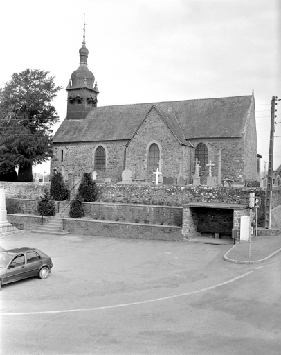 Eglise construite sur un promontoire. A conservée son enclos paroissial et son cimetière. Nef à un seul vaisseau. Plan en croix latine. Fausse voûte en berceau. Clocher en façade, clocher à bulbes. Chevet plat. Armoiries des seigneurs de Francheville portées sur la façade Ouest et plusieurs fois en façade sud. Gros oeuvre en moellons de granite. Deux assises en pierre de taille forment une bande décorative au sommet des façades.