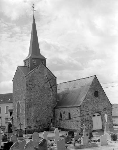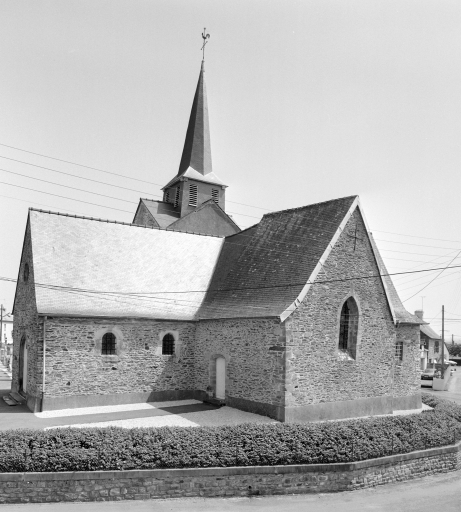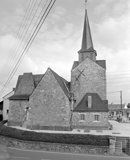 Eglise paroissiale devenue trève de Saint-Jean-sur-Vilaine entre le 16e siècle et la fin du 18e siècle. La paroisse a été recréée en 1825. Des vestiges de l'appareil roman sont encore visibles dans les murs sud et nord de la nef. Le choeur, la tour et la sacristie sont construits en 1621 et 1622, la nef a été remaniée en 1856 (porte la date) .