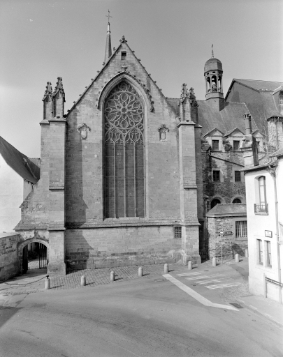La chapelle Saint-Nicolas était la chapelle des hôpitaux Saint-Nicolas et Saint-Yves établis à cet endroit depuis le 13e siècle. Au transfert de l'hôpital vers un nouveau site en 1986, la chapelle est devenue musée. L'édifice actuel a été édifié en deux campagnes : la première date du milieu du 15e siècle (façade occidentale, hormis la baie avec un réseau du 19e siècle), la deuxième campagne de la limite du 15e siècle, 16e siècle (porte latérale sud) . Sur l'enfeu de Robert de Grasmenil, chanoine de Vitré et administrateur de l'hôpital est gravée l'inscription suivante : CY GIST MESTRE ROBERT GRASMENIL EN SON TEMPS AUMONIER D (E) CEANS ET CHANOISNE DE LA MADELEINE LEQUEL A FAIT REDIFFIER CESTE EGLISE LE VINGT ET UNG (NIEME) JO (UR) DE JUILLET MILVC (500) . PRIEZ Dieu PO (UR) LUY.