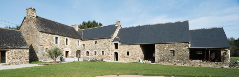 Les deux maisons et une partie des dépendances sont figurées sur le cadastre de 1828 (section C1, parcelles 396, 397 et 398). Le premier logis est édifié à la fin du 16e siècle, comme en témoignent la modénature des baies et la forme de la cheminée. En 1760, sa façade est partiellement masquée par un nouveau logis édifié perpendiculairement par Jean Le Goff, comme en témoigne l'inscription sur le linteau d'une fenêtre de l'étage : "F.F. PAR MOY JAN LE GOFF 1760". Ce marchand de toiles est délibérant au général de trève et membre du conseil de fabrique. C'est lui qui, en 1775, commandite la chaire à prêcher de l'église, sur laquelle son nom est sculpté aux côtés de Jean Le Meur, autre marchand de toiles, et de René Julien Le Bigot, curé de la paroisse.