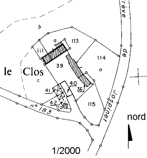 Manoir du 17e siècle, remanié, actuellement désaffecté. Le moulin des Clos en dépendait.