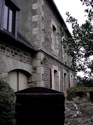 Maison de type ternaire, à double orientation, construite en grès pour le gros-oeuvre. Encadrement des ouvertures appareillé de granite en pierre de taille. Bandeau de granite horizontal régnant sur la façade antérieure. Oculus central à l'arrière. Ailes latérales basses mitoyennes surmontées d'un toit à croupe. L'utilisation et la mise en oeuvre du grès et du granite soulignent la composition de l'édifice et créent un effet de polychromie caractéristique.