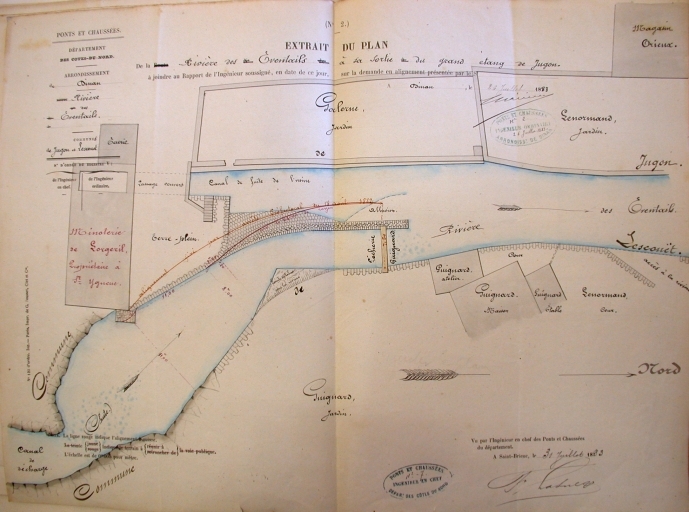 AD Côtes d'Armor. Série S ; sous-série 19 S : 19 S 1 (3). Service hydraulique. Versant de la Manche. Bassin de l'Arguenon, l'Arguenon, 1830-1935.