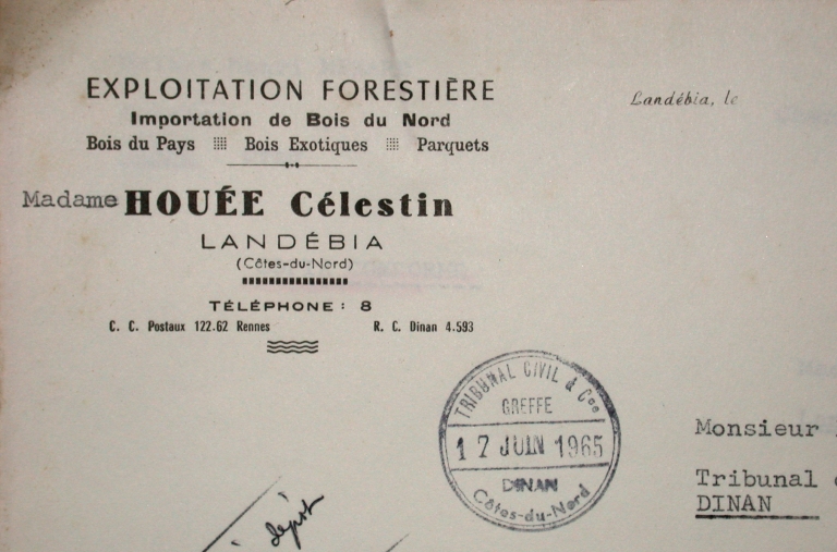 Cette scierie et cette usine de fibre de bois, fondées en 1928 par Célestin Houée, sont spécialisées dans la transformation du bois, la fabrication de charbon de bois, et le négoce de bois et de matériaux de construction. Le logement patronal semble avoir été construit au cours du deuxième quart du 20e siècle. Le 1er octobre 1945, l'entreprise se constitue en SARL Houée et fils. Le 15 juin 1957, formation entre Célestin Houée et son fils Jean, d'une société en nom collectif (Etablissements Houée et fils) ayant pour objet l'achat, la fabrication et la vente de tous objets en bois ou dérivés du bois. Durant l'hiver 1959, Célestin et Jean Houée créent la Société Armoricaine des Emballages Légers. En 1960, le capital social s'élève à 2 000 000 francs. Un an après le décès de Célestin Houée survenu en 1964, son épouse et son fils Jean forment la Société Nouvelle des Etablissements Houée dont l'objet est l'exploitation forestière, la scierie et le commerce de tous bois et dérivés, ainsi que le négoce des bois du Nord et du pays. Actuellement, l'entreprise Houée - fabrique d'emballages (cageots) et exploitations forestières - est toujours en activité. En 1965, le matériel fixe de l'entreprise Houée se compose notamment de scies à ruban, de scies circulaires et de matériel de parquetterie.