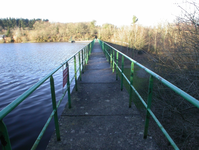 L'établissement des eaux de Bobital trouve son origine en 1862, dans la mise en service de la première adduction qui consistait à dériver le ruisseau de Cassepot pour alimenter par gravité un réservoir installé dans le centre ville de Dinan (22). Rapidement insuffisante, cette installation est complétée à partir de 1898 par la construction à Bobital, par la ville de Dinan, de réservoirs et d'une station de pompage. L'usine des eaux, la maison du mécanicien et la salle des machines abritant une machine à vapeur sont édifiées entre 1900 et 1901. Réglementé par arrêté préfectoral du 29 janvier 1901, un barrage est établi sur le ruisseau du Guinefort dans le but de produire de l'eau potable pour Dinan et sept communes environnantes : Léhon, Quévert, Lanvallay, Taden, Trélivan, Aucaleuc et Tressaint. Les ouvrages du barrage consistent simplement en un aqueduc de prise d'eau en grès, mesurant 0, 35 m de diamètre et 25 m de longueur environ, situé perpendiculairement à la direction du cours du Guinefort, et en une vanne-barrage qui occupe tout le lit de la rivière ; celle-ci mesure 1, 30 m de largeur et 0, 50 m de hauteur et est placée à 40 m en amont du pont de la route départementale 793 qui relie Dinan à Brusvily (22). En 1923, la ville de Dinan achète l'étang du Val situé près de Bobital ; il s'agit alors d'une réserve de 150 000 m3 d'eau. Dix ans plus tard, les captages de Bobital sont remis en état. La salle des machines est agrandie à l'est. En 1959-1960, on construit le barrage actuel de Bobital qui retient 554 000 m3 d'eau. Il s'agit d'un barrage en béton à voûte unique de 9, 50 m de hauteur et dont la longueur du développement de la crête mesure 83, 78 m. En 1965, un autre station de pompage est construite afin de capter la source du Bois-Riou à Quévert (22). Entre 1971 et 1973, un second barrage est édifié au Pont-Ruffier. D'une hauteur de 16, 40 m, il retient un volume d'eau de 1 900 000 m3. Au pied du barrage, une station de pompage refoule l'eau brute dans la retenue de Bobital. En 1989 et 1990, une nouvelle unité de traitement des eaux (toujours active) est construite en remplacement de celle existante, légèrement à l'ouest ; l'ancienne salle des machines et le logement du contremaître (maison du mécanicien) sont restaurés à cette occasion.