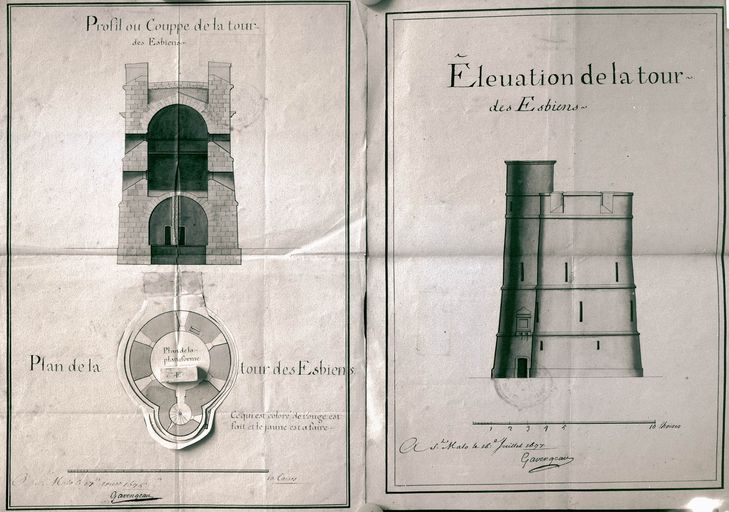 Garengeau établit les plans de la tour des Hébihens (coupe et plan de la tour des Hébihens, à Saint-Malo par Garengeau, le 17 août 1695) suivant le projet directeur de Vauban. Le parti de construction est à rapprocher des modèles de tour tronconique à escalier hors oeuvre type Tatihou et la Hougue (mis en oeuvre par l'ingénieur Benjamin de Combes).
