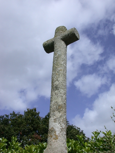 Croix de chemin en granite, ronde sur socle et soubassement à corniche.