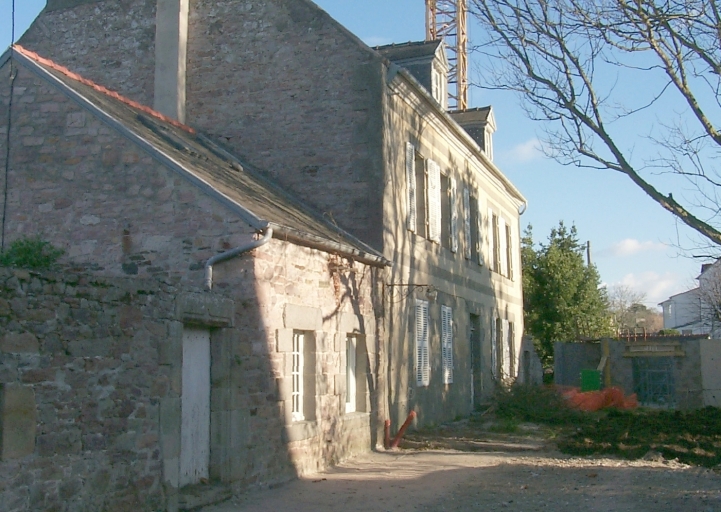 Maison de type ternaire à cinq travées en façade antérieure et à trois travées en façade postérieure construite en grès et granite sur un plan double en profondeur. Elle est flanquée d'une dépendance plus basse à gauche.