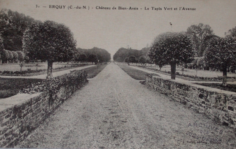 Le château de Bienassis est une construction multiphasée dont les origines remontent au milieu du Moyen Age. Ce château du 15ème siècle, transformé et agrandi au goût de la Renaissance au cours du 17ème siècle, a succédé à un manoir du 12ème ou du 13ème siècle à salle à plan basilical et à ossature de bois cerné d´une douve primitive prolongée au cours de la 1ère moitié du 15ème siècle. Propriété d´une famille dénommée de La Motte au milieu du Moyen Age, probablement seigneurs de La Motte d´Erquy, la terre de Bienassis fut acquise au début du 15ème siècle par Jean de Quelennec, seigneur de Quelennec en Quintin, uni à Tiphaine du Fou en 1374. L'actuel corps de logis a été reconstruit pour Geofroy de Quelennec, fils cadet de Jean de Quelenec, entre 1414, date à laquelle le manoir primitif est déclaré en ruine, et 1434, date à laquelle l´existence d´un manoir neuf est attestée. Une enquête datée de l'année 1434 stipule en effet que le manoir primitif « estoit mal logé et y avoit une ancienne salle gasté et vidé, laquelle ledit Geoffroy [de Quellenec] a fait tresbien réparer et édiffier et auxi y a fait une meson neufve ».